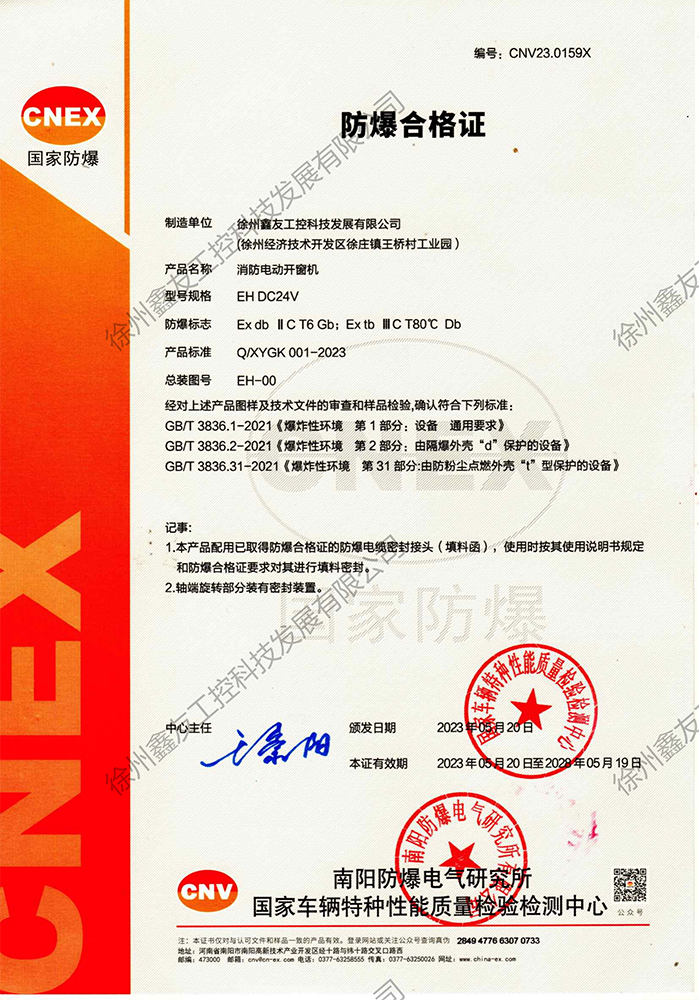 徐州鑫友工控科技發(fā)展有限公司成立于2008年,占地31600平方米,全資子公司:江蘇良紫工程科技有限公司,旗下 有“鑫友”及“MASTER.W主人窗控”兩個品牌系列,公司全面貫徹執(zhí)行IS09001:2015質(zhì)量管理體系標準,產(chǎn)品順利通過歐盟CE認證和中國***消防電子產(chǎn)品認證,通過可燃性粉塵環(huán)境下、爆炸性環(huán)境下防爆合格產(chǎn)品檢驗。排煙天窗整窗通過***消防產(chǎn)品質(zhì)量監(jiān)督檢驗中心檢測。先后獲得多項******及榮譽證書。集研發(fā)、加工、生產(chǎn)、制造、銷售、安裝及售后于一體,是一家高起點、研發(fā)能力強的專業(yè)智能化企業(yè)。