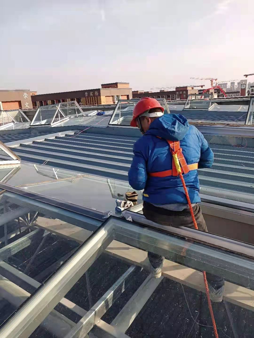 屋面電動(dòng)排煙天窗,安裝位置高,可操作平臺(tái)面積小,鑫友專(zhuān)業(yè)安裝團(tuán)隊(duì)?wèi){借過(guò)硬的安裝本領(lǐng),豐富的安裝經(jīng)驗(yàn),客服困難,保質(zhì)保量得完成了安裝任務(wù),并按期完成驗(yàn)收,交付使用。