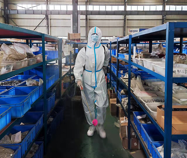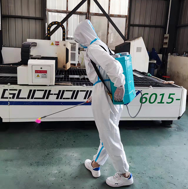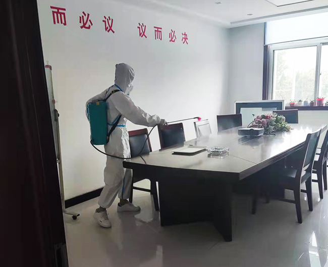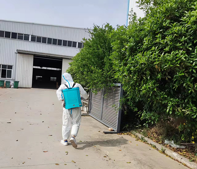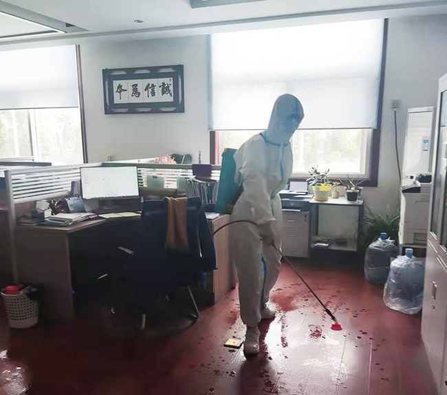 為確保公司各個(gè)部門在疫情期間的工作安全,防止疫情傳播,做好消毒防護(hù)工作,全公司進(jìn)行了消毒消殺,消毒中為了不傷害員工身體健康,組織員工撤離現(xiàn)場(chǎng),消毒人員佩戴口罩、乳膠手套、身穿防護(hù)服進(jìn)行作業(yè)。