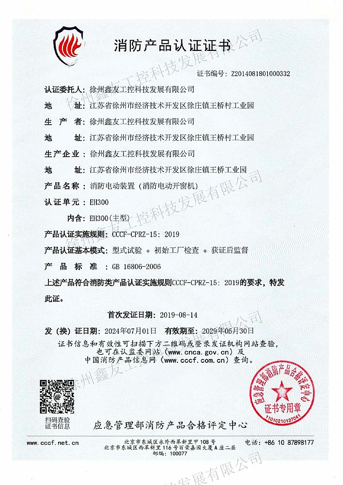 消防產(chǎn)品認證證書EH300