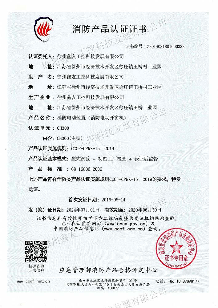 消防產(chǎn)品認證CH300(2019...