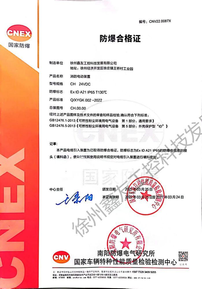 電動螺桿開窗機防爆合格證書(粉塵環(huán)境下)