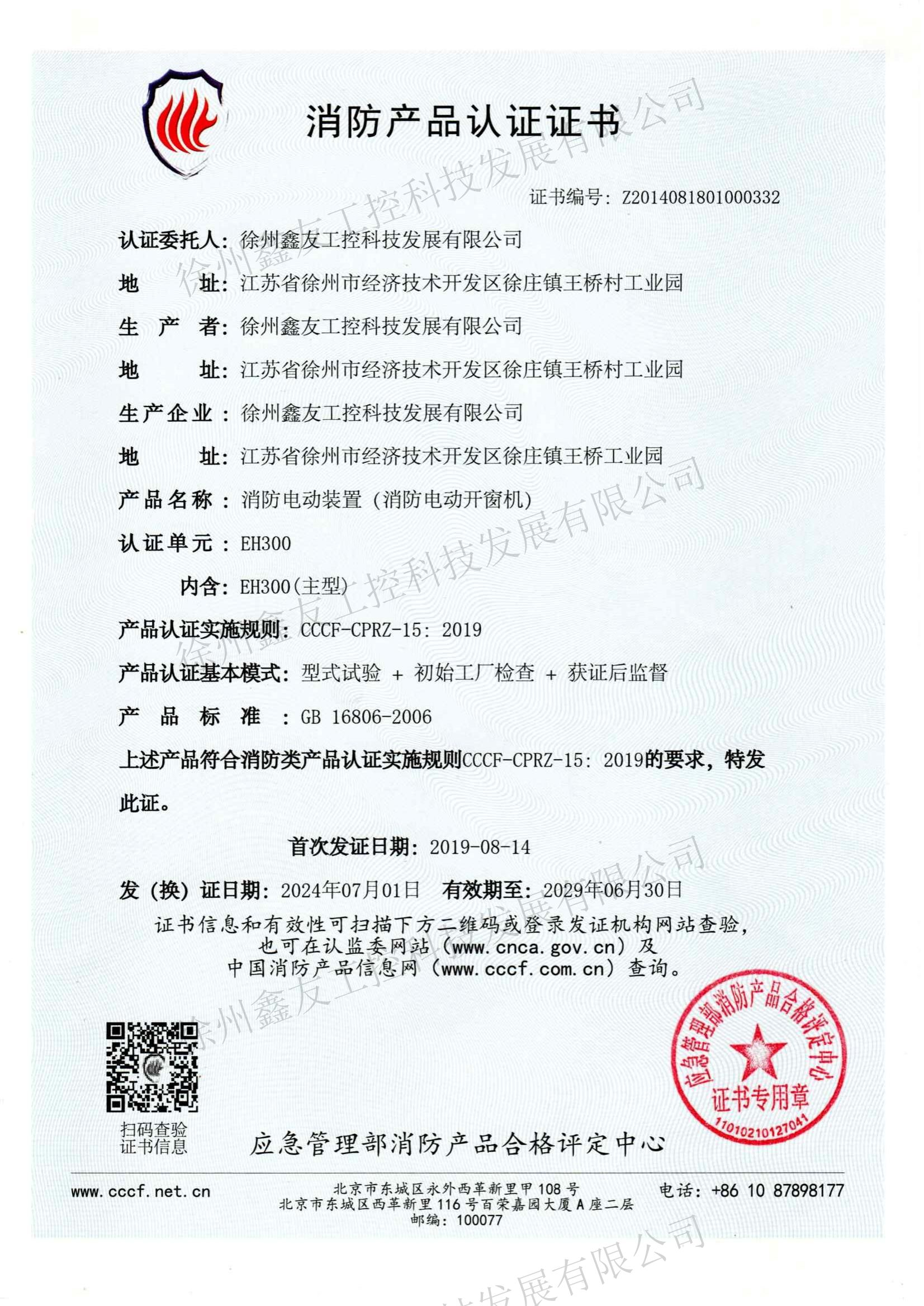 消防產(chǎn)品認(rèn)證證書EH1000EH500EH700