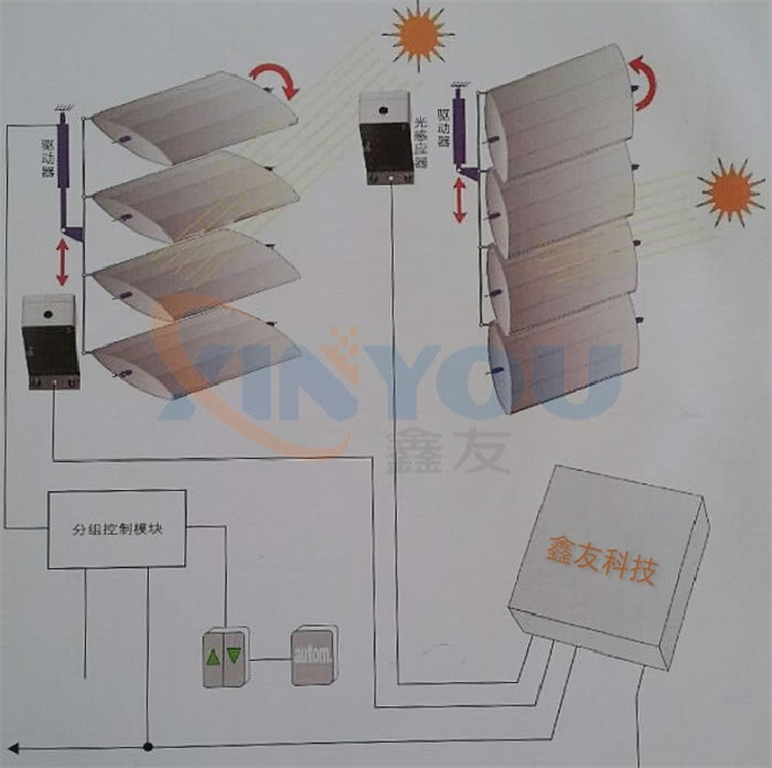 光感追蹤百葉是在傳統(tǒng)手動百葉窗的基礎(chǔ)上,運用了單片機和傳感器技術(shù),通過光照強度的變化來自動調(diào)節(jié)百葉窗開啟角度,以達(dá)到全天侯的***佳透光效果。