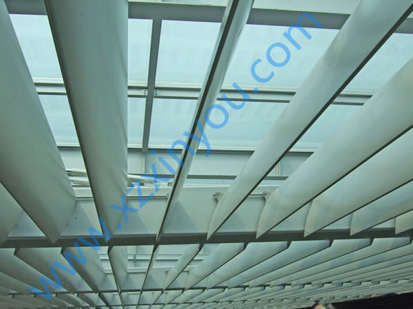 中空梭型百葉窗遮陽(yáng)板采用中空結(jié)構(gòu),具有強(qiáng)度高、跨度大的特點(diǎn),通過(guò)與玻璃幕墻的配合,可實(shí)現(xiàn)遮陽(yáng)、采光、裝飾建筑物的效果。 梭型百葉可以橫向、豎向安裝(或固定葉片),通過(guò)電機(jī)帶動(dòng)葉片的旋轉(zhuǎn)(0°~120°),從而改變室內(nèi)采光效果,達(dá)到遮陽(yáng)節(jié)能的目的。葉片尺寸和顏色可以根據(jù)客戶要去定制。